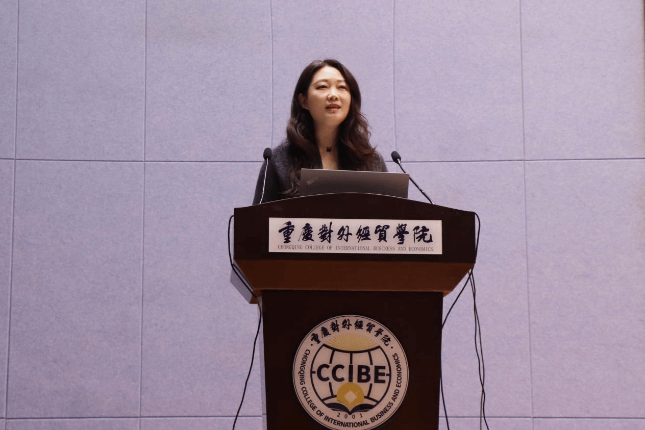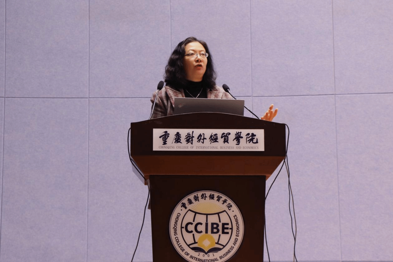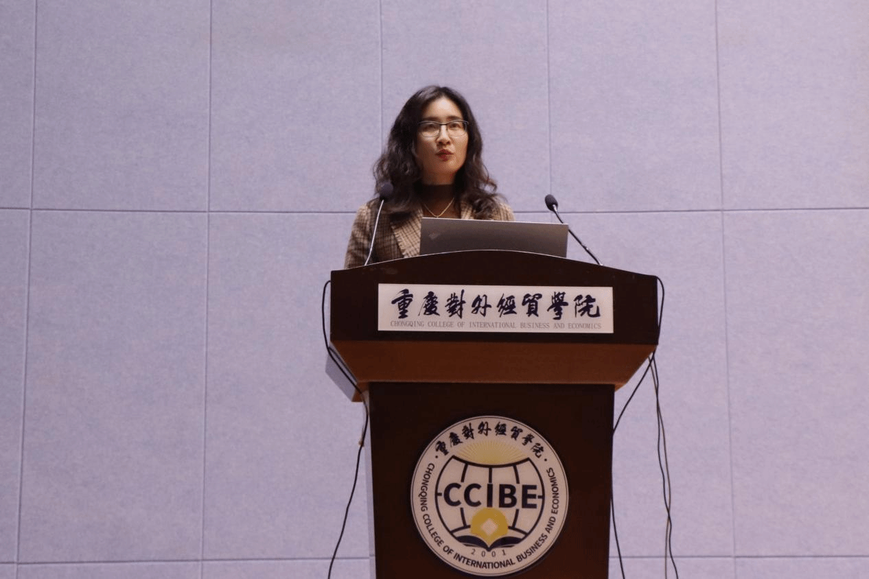 (图为重庆对外经贸学院李霓副教授作主旨发言)