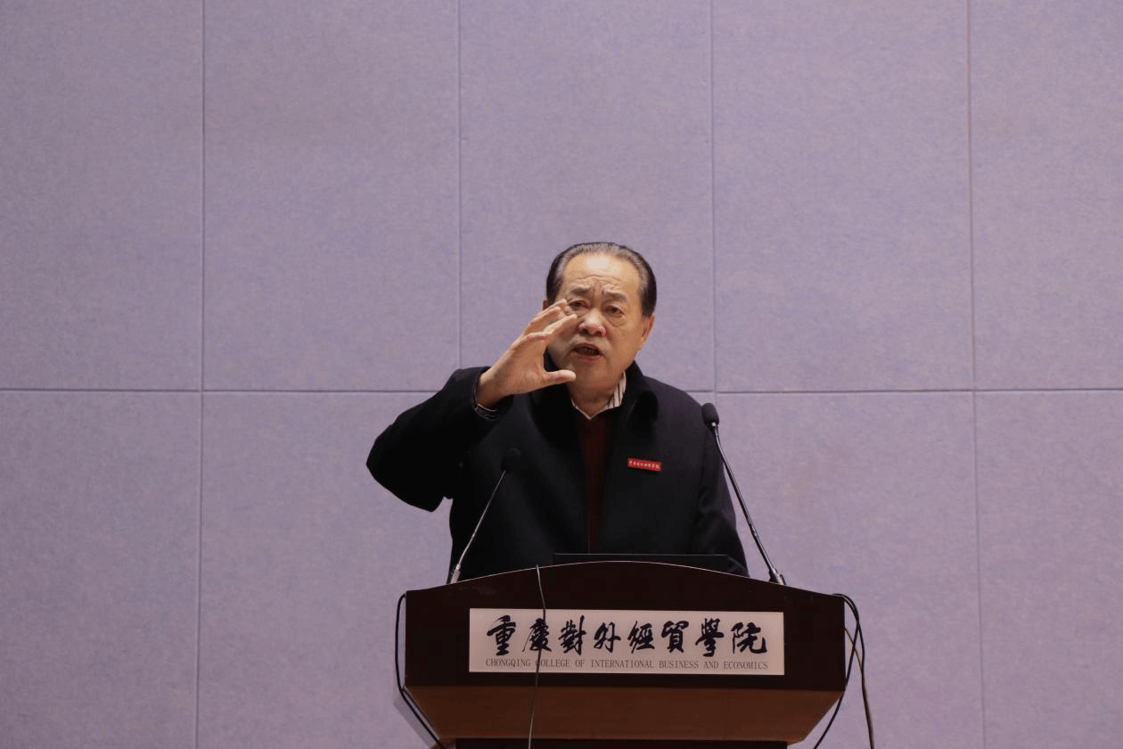 (图为重庆市商务英语研究会会长段玲琍教授在开幕式上致辞)