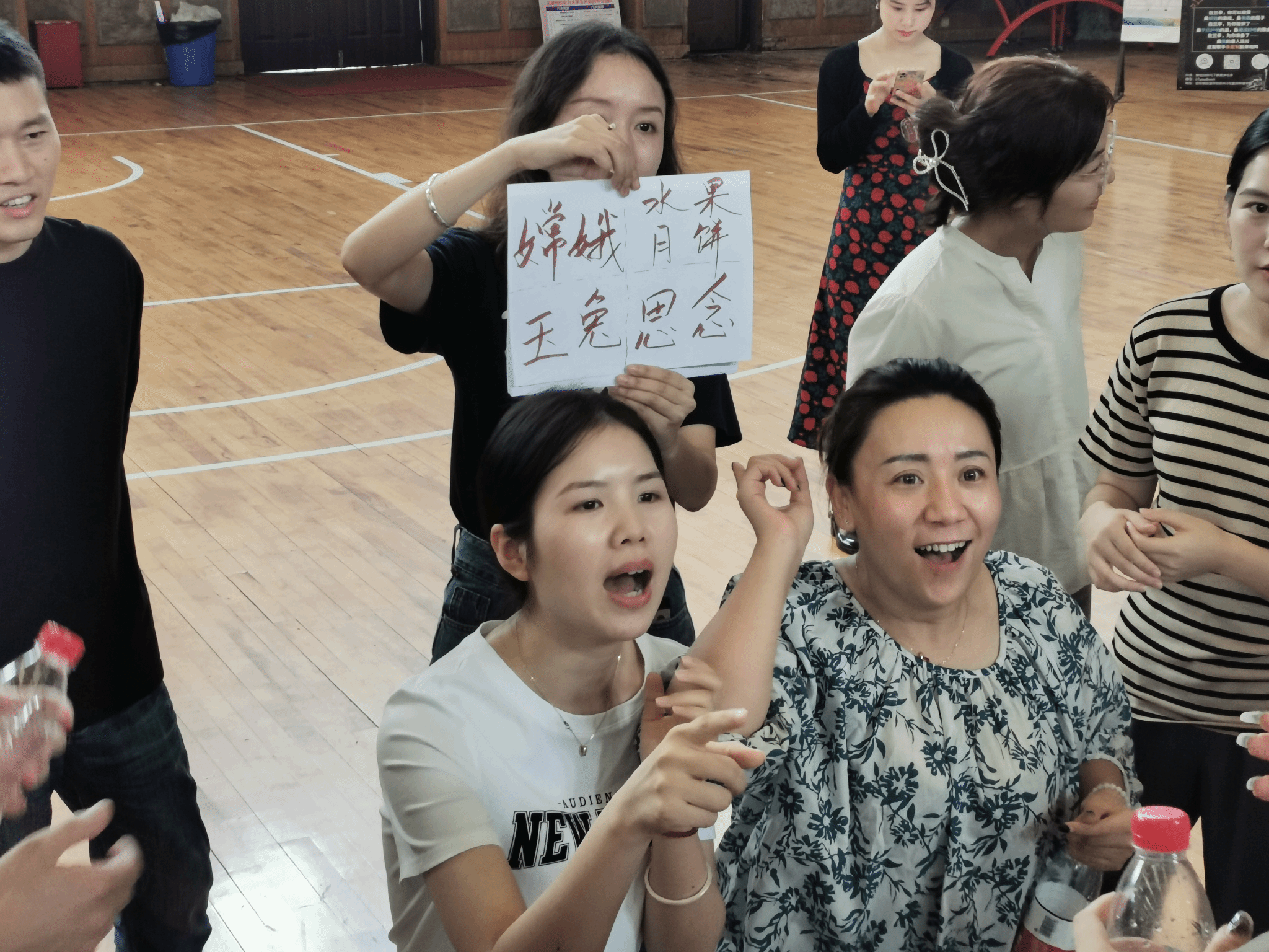 在“筷”乐传递游戏中,老师们小心翼翼用筷子传递乒乓球,彼此鼓励,默契配合,让全场气氛瞬间燃起来;在“篮”不倒你游戏中,老师们手脚并用、花样过关,依次通过拍篮球、踢毽子、跳绳障碍,铆足劲为团队获胜而努力,气氛紧张又有趣;在“你比划我猜”游戏中,老师们手舞足蹈、滔滔不绝,使出浑身解数表达词汇,瞬间将活动氛围推向高潮。