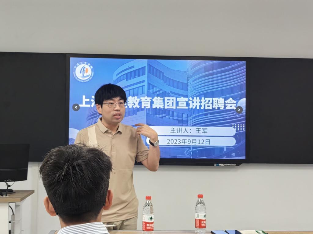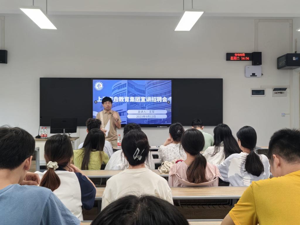 为更好的推动毕业生就业工作,拓宽毕业生就业渠道,9月12日下午,外语外贸学院特邀2005级优秀毕业生王军携上海宙垚教育集团在B6214进行招聘宣讲活动。