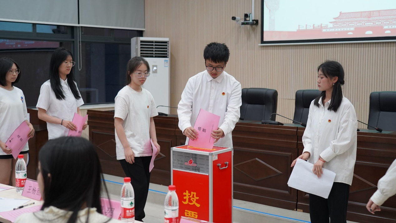 图为学生代表进行无记名投票