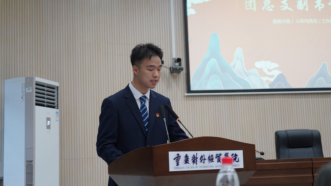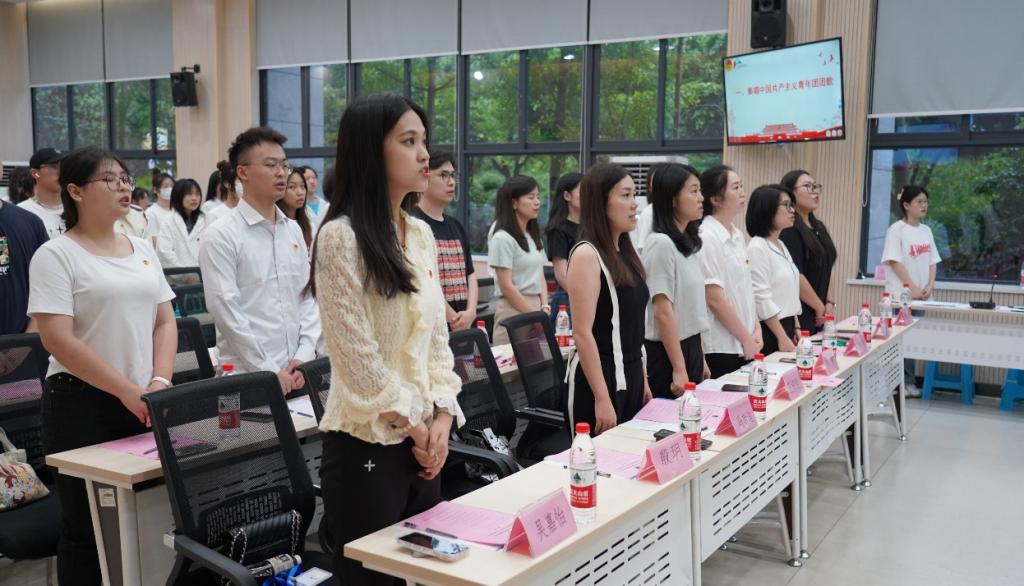大会第一项议程,参会人员全体奏唱中国共产主义青年团团歌。校团委副书记冯斯迪宣读团委批复意见,大会宣读并通过《重庆对外经贸学院影视融媒体学院2023年学生兼职团总支副书记选举办法》《监票人、计票人名单》、候选人名单。