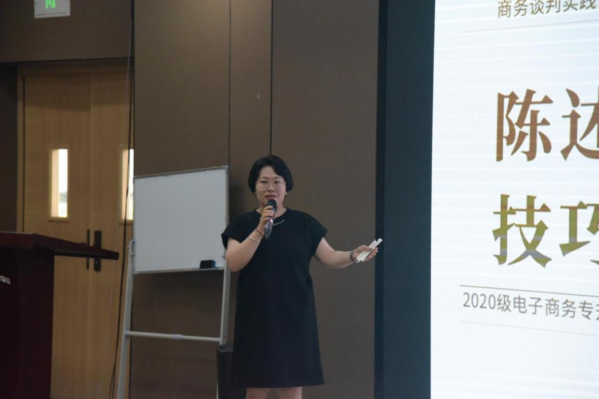 田甜老师主讲商务谈判沟通技巧,由语言引入讲到了倾听技巧、陈述技巧、提问技巧、回答技巧。随后便通过实际案例结合扮演不同角色的7位同学情景再现,打破传统课堂形式,使听讲的老师一并参与其中、同学们感到更加身临其境。在生动的情景中学习到知识,印象更加深刻。