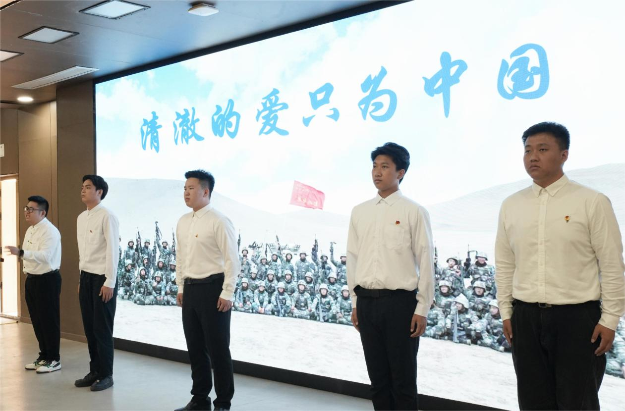 再次,新发展党员代表入党宣誓、转正党员代表重温入党誓词,紧接着,由学院退伍军人组合奉上诗歌朗诵《清澈的爱》,铿锵有力的声音,饱含深情的话语,字字句句表达了对祖国的强烈热爱。