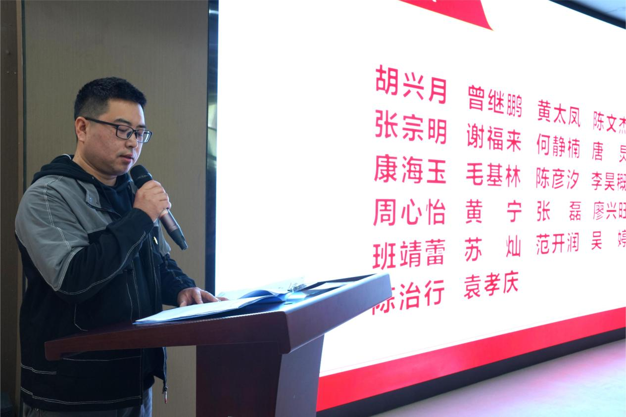 转正党员代表袁浩同志作发言,他表示党员同志要发挥先锋模范作用,敢于斗争,敢于冲锋,不畏艰险,砥砺前行。