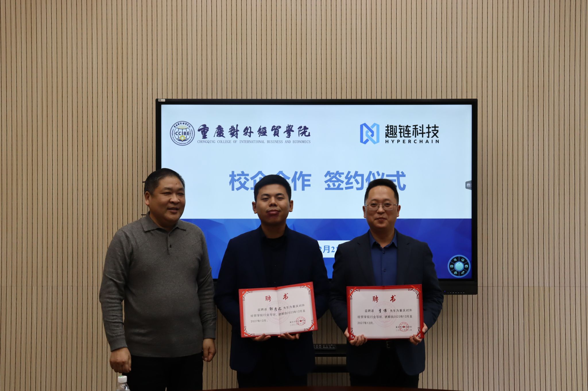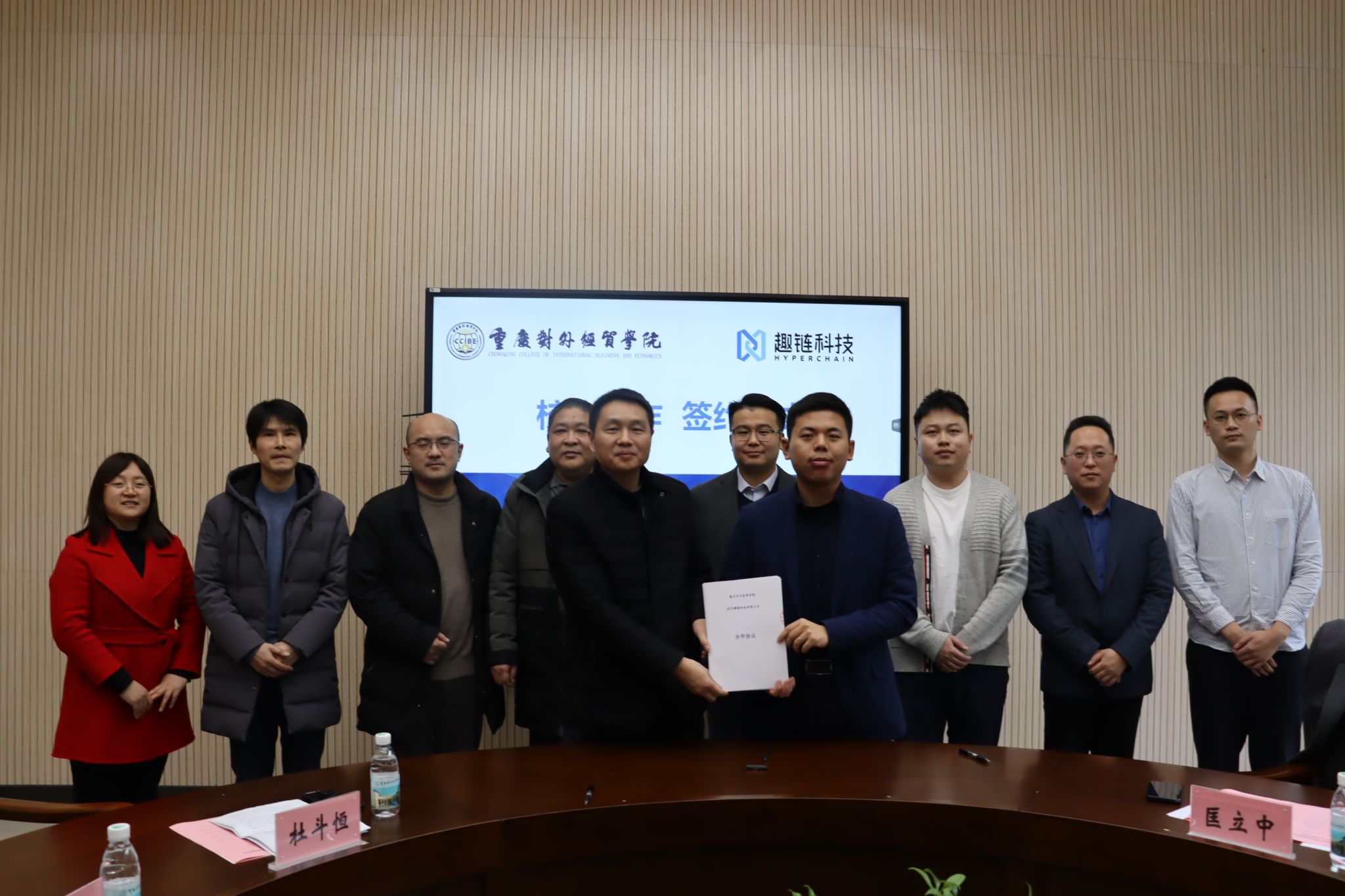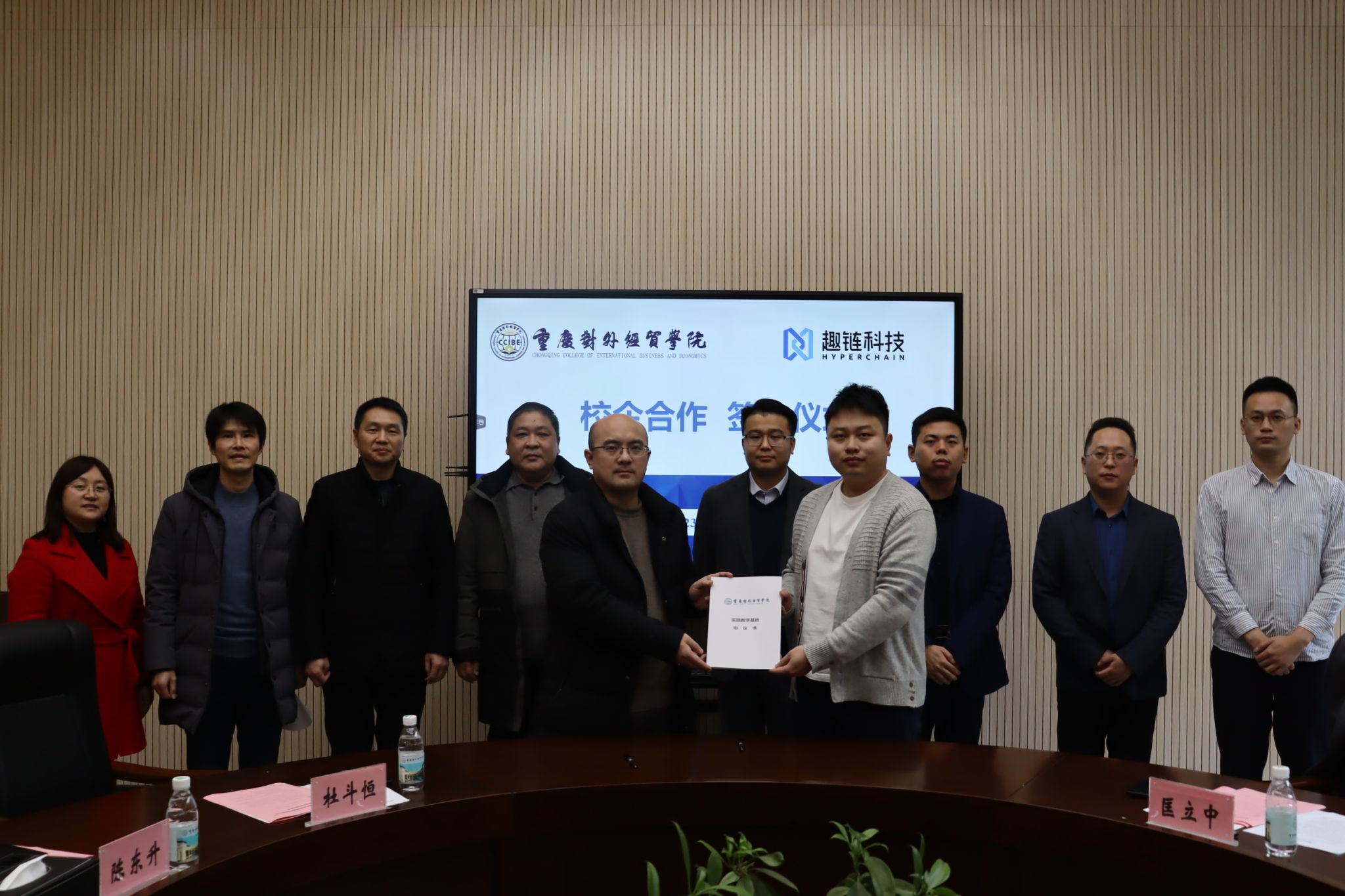 为深化产教融合、校企合作,推动学校专业建设及人才培养模式改革,促进区块链工程专业教育的整体发展和提高。2023年12月21日下午,重庆对外经贸学院与杭州趣链科技有限公司在合川A校区9104会议室举行了校企合作签约仪式。重庆对外经贸学院校长李明海、副校长杜斗恒、数学与计算机学院院长陈东升、教务处副处长彭高中、数学与计算机学院党总支书记尹翔、数学与计算机学院副院长马秀芬以及杭州趣链科技有限公司创始人兼高级副总裁匡立中、重庆趣链科技副总经理唐瑞琮、教育事业部总监郭彦之等参加签约仪式。