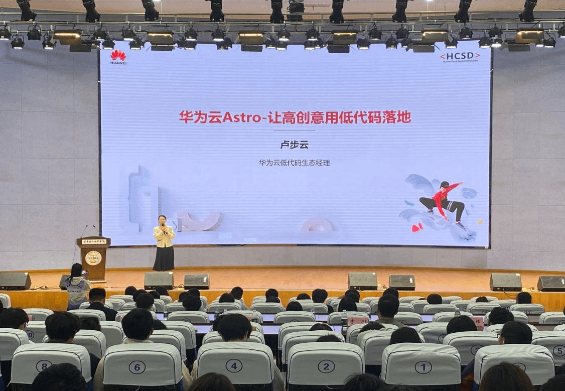 (图为华为云低代码生态经理卢步云为同学们讲解低代码技术)
