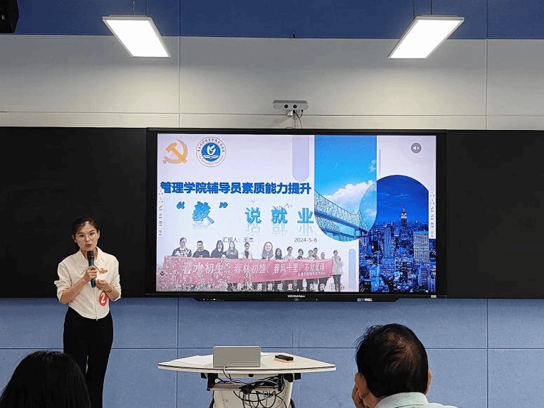 为进一步推进辅导员队伍建设,强化辅导员职业能力和专业素养提升,管理学院于5月8日在B校区B3301教室举行了辅导员素质能力提升工程——说学情、说就业活动。管理学院院长陆林,校团委书记、马克思主义学院副院长史丽涛,学生处副处长张雪峰,数计学院党总支书记尹翔,管理学院党总支书记周万春出席本次活动并担任评委,学院全体辅导员、学生代表参加了本次活动。