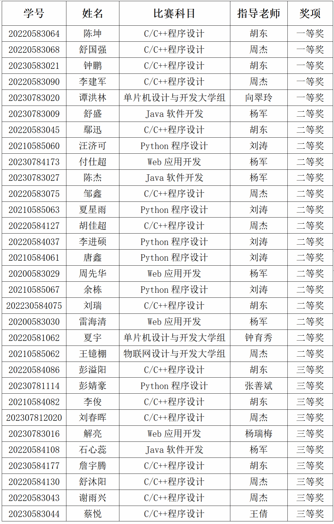 附:详细获奖名单