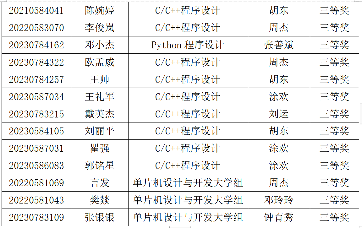 近日,第十五届蓝桥杯全国软件与信息技术专业人才大赛省赛结果公布,大数据与智能工程学院44名学生喜获佳绩,其中钟鹏、陈坤、谭洪林、舒国强、李建军等5名同学获得一等奖,舒盛、唐鑫、夏宇、王镱棚等16名同学获得二等奖,李俊、石心蕊、言发、张银银等23名同学获得三等奖。获得省赛一等奖的学生将代表学校参加国赛,预祝他们取得更好的成绩。