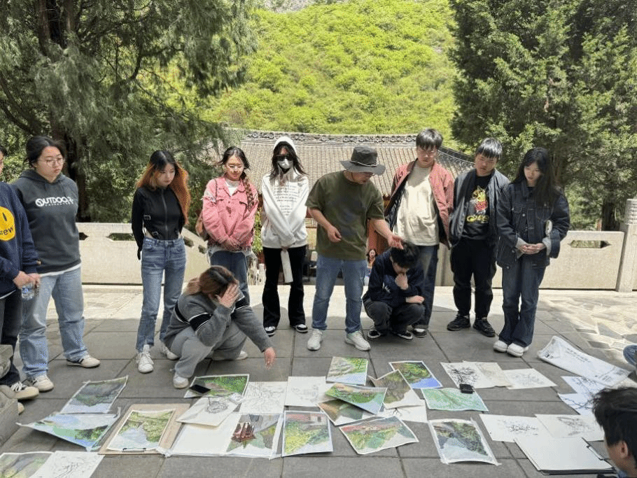 在写生教学过程中,老师们详细介绍了当地的地质地貌、生态环境和历史文化,并结合当地自然景观和历史文化资源,开展现场教学。同时,针对学生每天完成的绘画作品进行一对一指导和点评,让学生的专业技巧在实践中获得提升,引导学生探索艺术的本质和内涵。