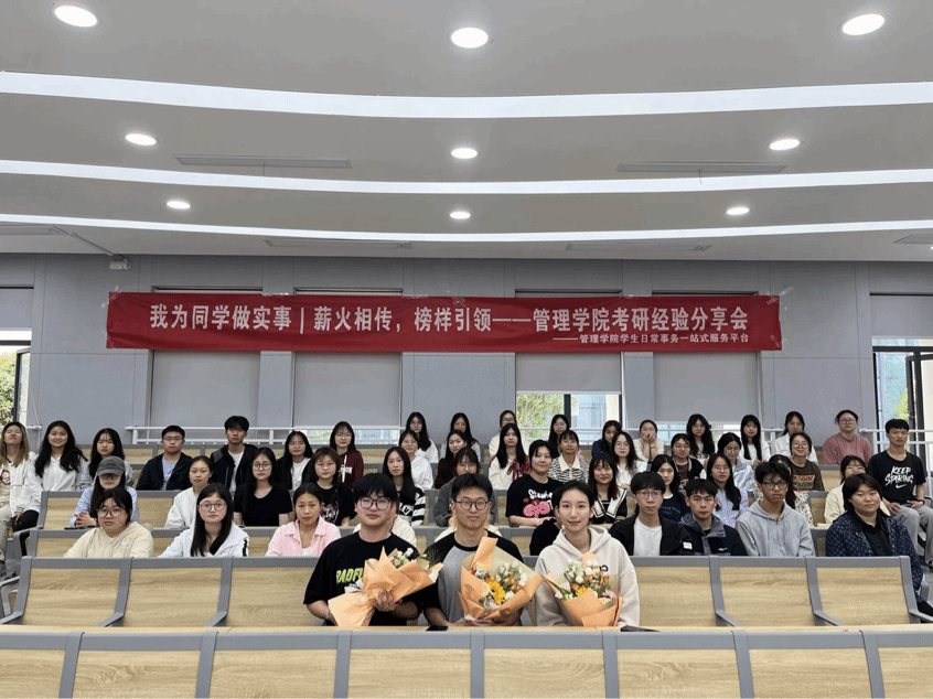 本次考研经验分享会成功举办,进一步加强了管院学子对考研过程的深入了解,为意向考研的同学们提供了切实可行的学习方法,有助于同学们更好地开展学习计划,提高学习效率,完成学习目标,最终一战成硕!