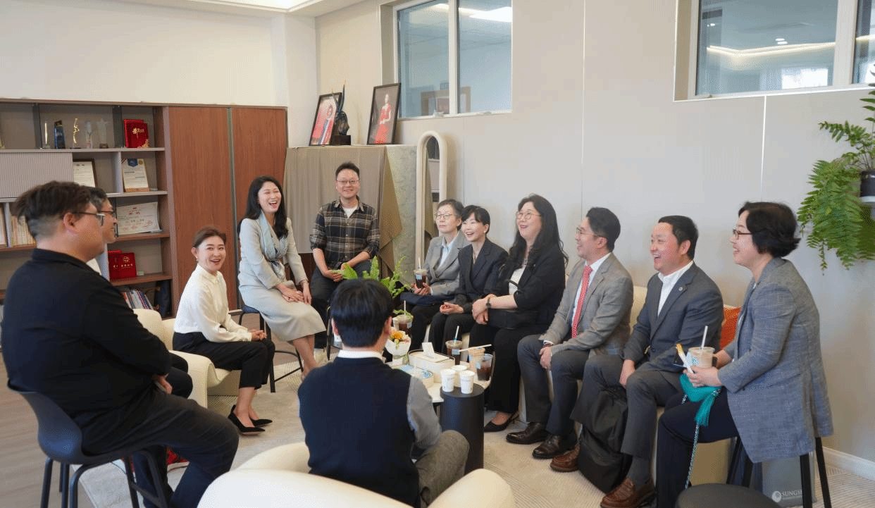 (韩国诚信女子大学副校长朴鲁允(박노윤)、音乐学院院长吴倫周(이형민)一行在我校音乐舞蹈学 院院长办公室亲切座谈交流)
