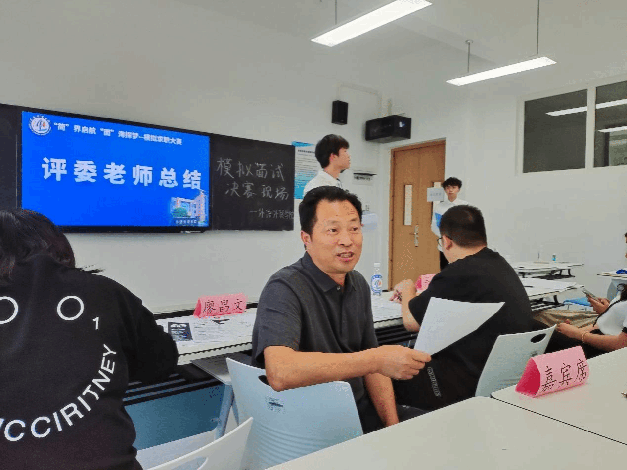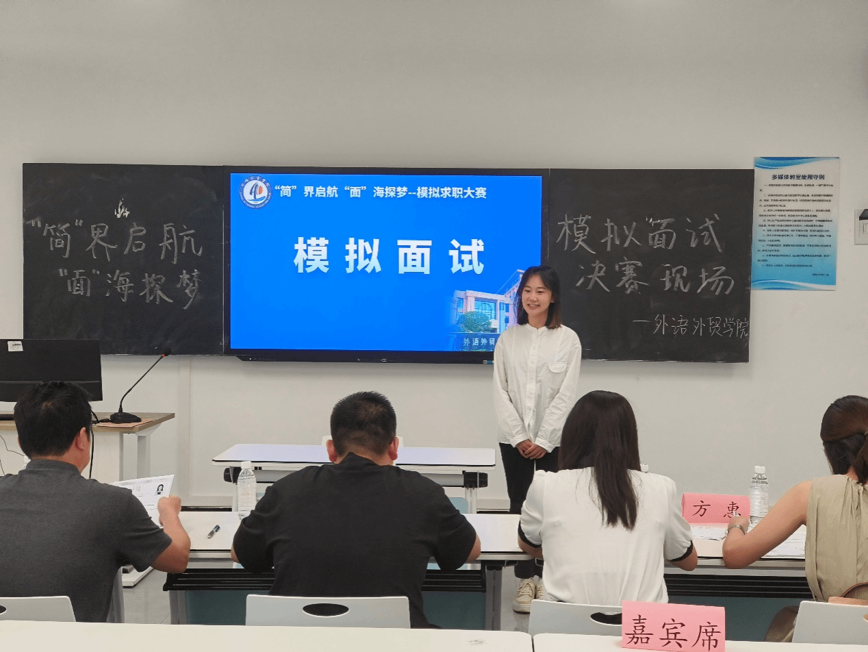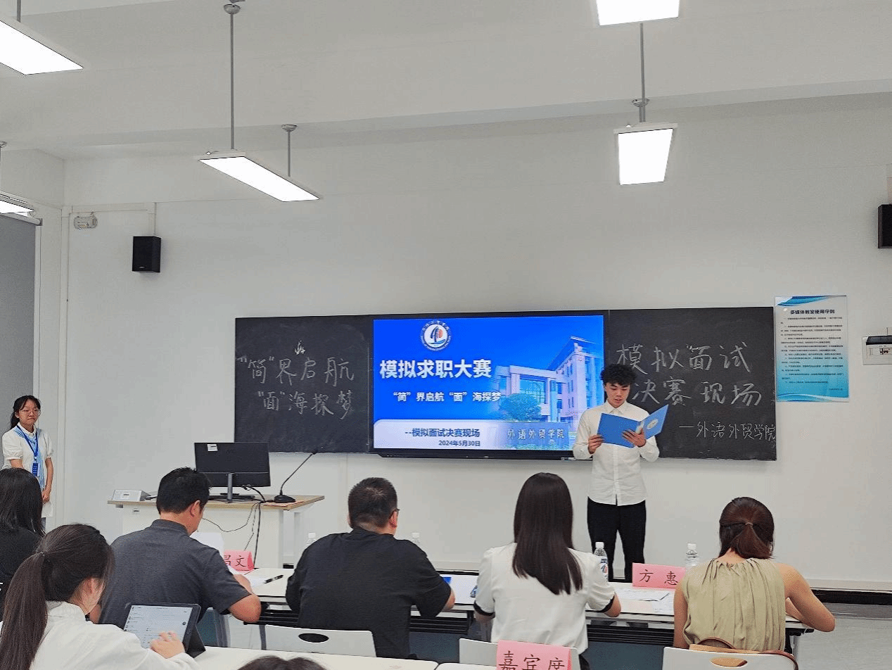 为引导学院2025届全体准毕业生强化正确的就业观,掌握求职技能,提升求职能力,外语外贸学院于5月中下旬举办了“‘简’界启航,‘面’海探梦”模拟求职大赛,决赛于5月30日下午在6308落下帷幕。