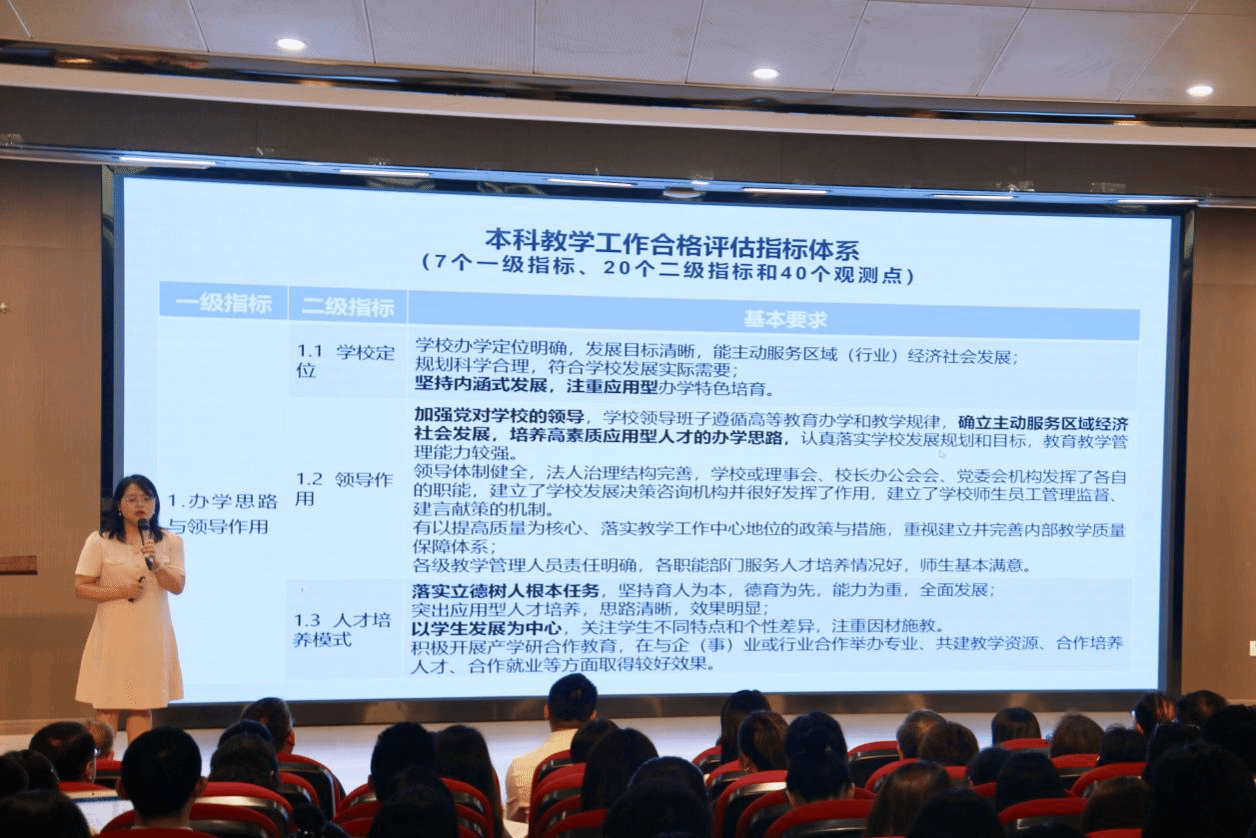 紧接着,学院教学院长李艳解读了《本科教学工作合格评估实施方案》。她详细阐述了评估的目标、标准以及当前学院在各方面存在的问题,为接下来的工作指明了方向。李艳院长强调,全体教师要深入理解评估要求,严格按照评估标准开展教学工作。
