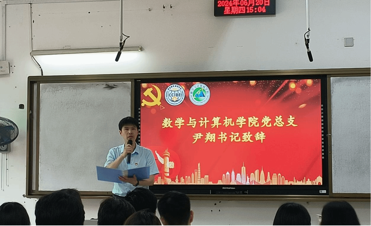 活动伊始,数学与计算机学院党总支尹翔书记进行致辞,并做出倡导,倡导“无勌”红色志愿团志愿者们以“无界”的精神、“无涯”的情怀和“无量”的意志,共同书写崭新的篇章。