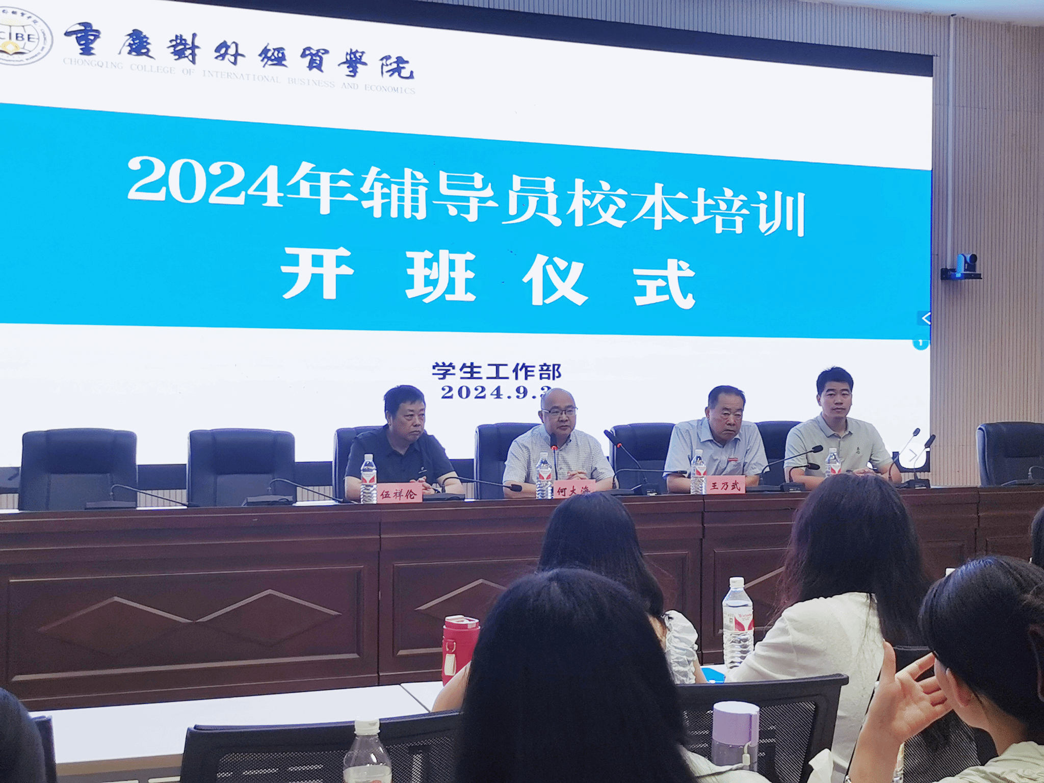 【本网讯】为深入贯彻落实立德树人根本任务,帮助新进辅导员尽快转变角色、熟悉岗位、提升素养,打造高素质的辅导员队伍,9月3日上午,学校2024年辅导员校本培训开班仪式在A校区9106会议室举行。学校党委书记何大海、常务副校长王乃武出席开班仪式,学生处处长伍祥伦主持会议,学生处副处长张雪峰、2023年至2024年新入职辅导员参加会议。