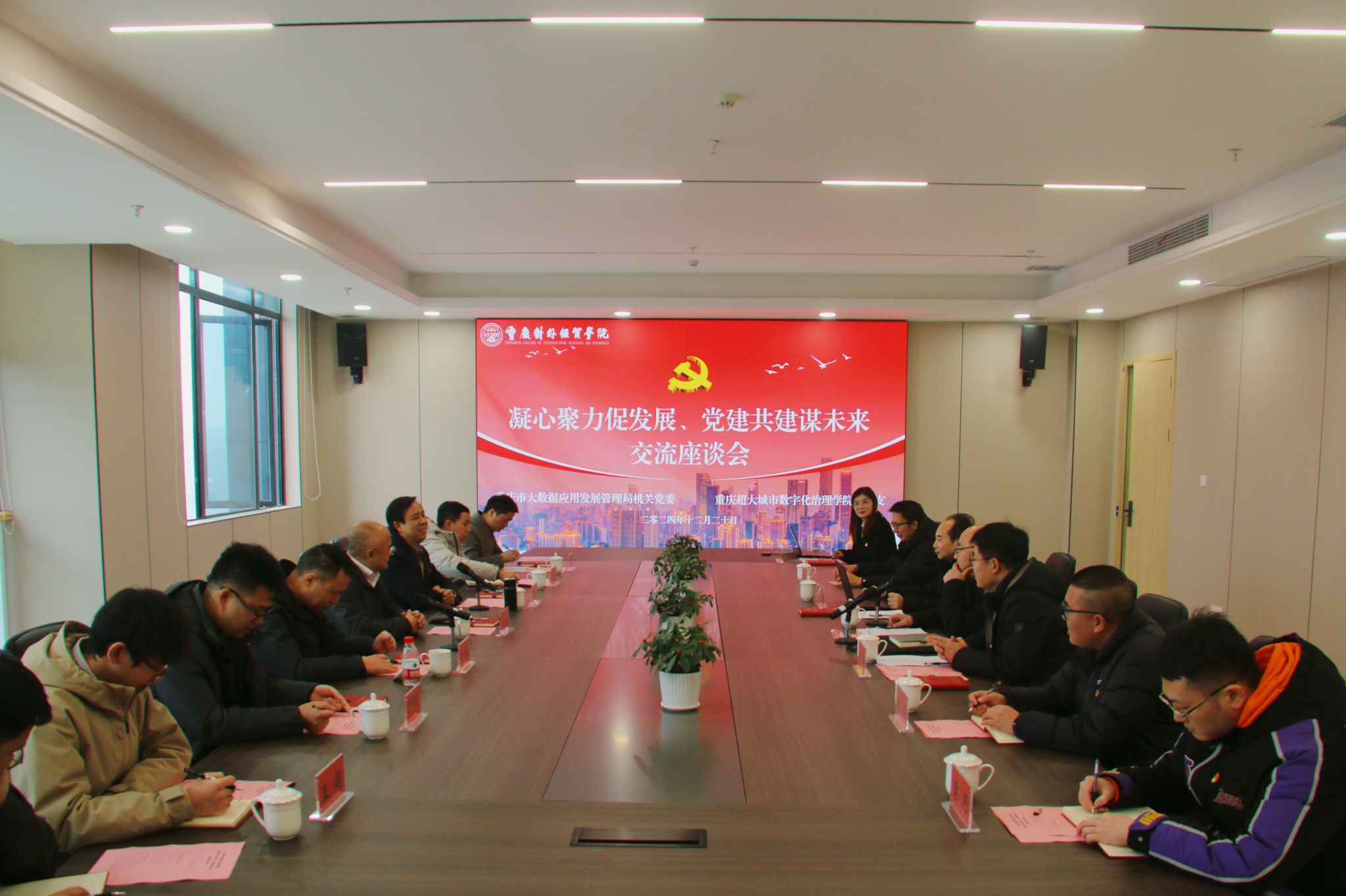 此次主题党日活动,是双方联合办学后常态化运行的重要开端,不仅加强了我校与市大数据发展局之间的沟通交流,更为重庆超大城市数字化治理学院的发展指明了方向,明确了目标。大家纷纷表示,将以此次座谈会为契机,进一步凝聚共识、汇聚力量,为推动落实“数字重庆”部署、积极探索超大城市现代化治理新路子贡献智慧和力量。未来,重庆超大城市数字化治理学院将继续秉持开放办学的理念,继续深化“产教创融合共生、政企校联合培养”的模式,着力推进学校治理体系和治理能力现代化,多方搭建“政企校”合作的桥梁,共同推动超大城市数字化治理事业的蓬勃发展!