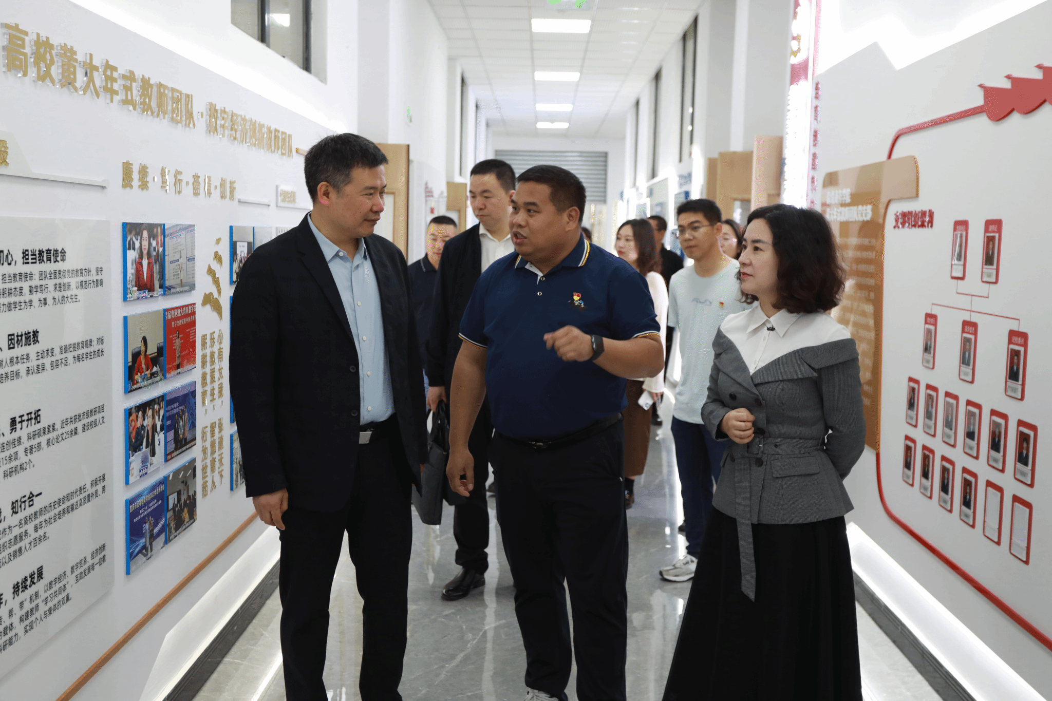 高天红书记高度评价学校党建工作,实地考察了跨境商务学院、外语外贸学院、体育与健康学院、管理学院以及艺术设计学院的党建活动阵地。