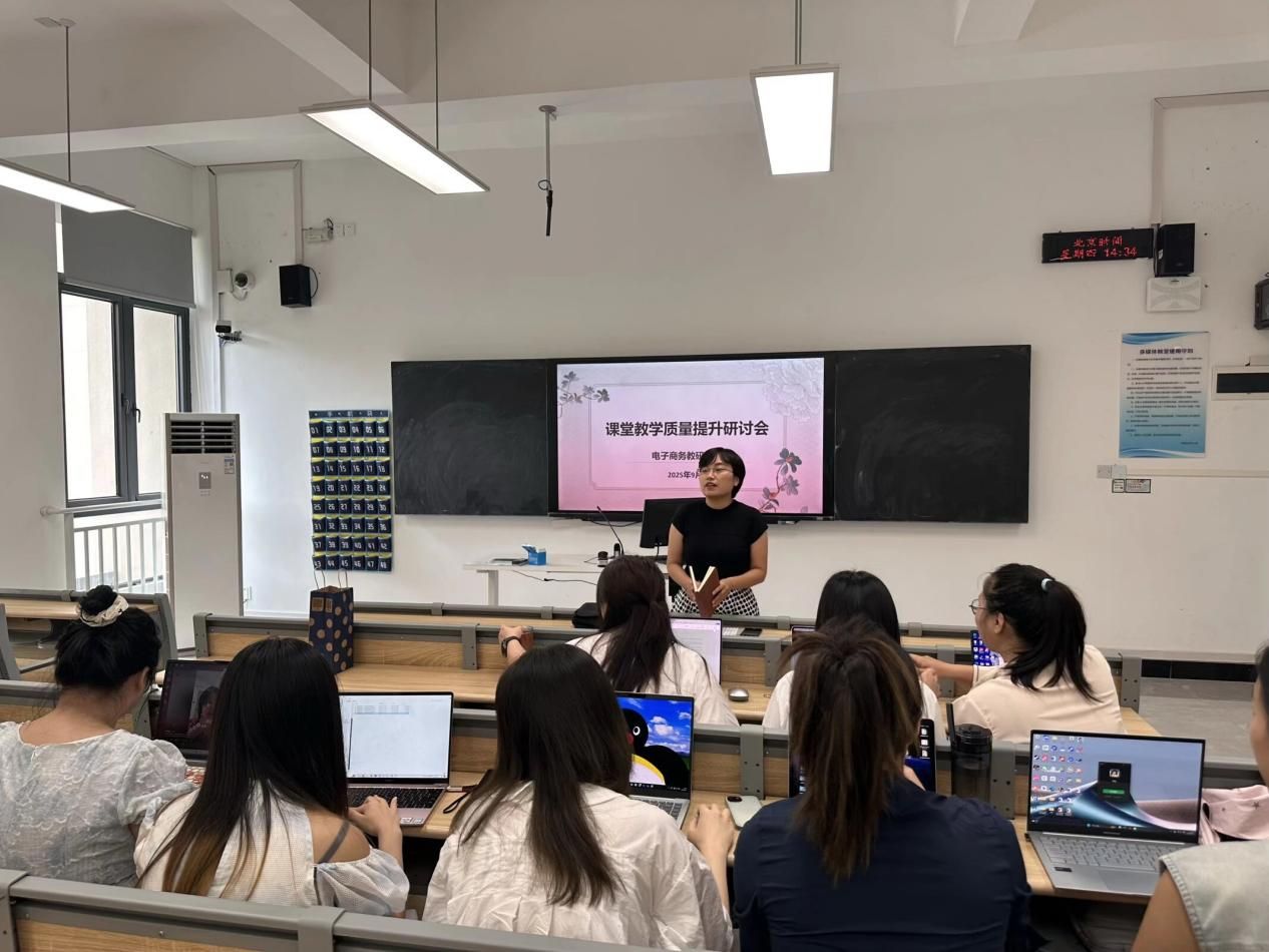 专题研讨,深度探究。2025年6月至8月,学院依据专业特点,组织进行了专题研讨。国际经济与贸易、电子商务等教研室以课程建设为主题深入研讨,数字经济教研室研读了教育部有关文件并展开讨论,物流管理教研室则着重于“AI赋能的数智化教学”。这些专题研讨给教师们带来了新的教学观点与创新思维,推动了教学理念的革新与课程内容的改进,为提升教学质量奠定根基。