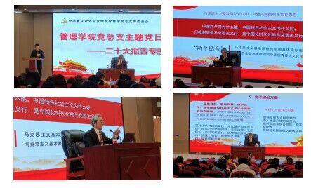为深入学习贯彻党的二十大精神,全面贯彻习近平新时代中国特色社会主义思想,管理学院于2022年3月9日在合川B校区举办了“以中国式现代化全面推进中华民族伟大复兴——中国共产党第二十次全国代表大会解读” 为主题的讲座。讲座由中共重庆市委党校(重庆行政学院)三级教授,硕士生导师,MPA导师,小平干部学院特聘教授,重庆对外经贸学院教授崔如波教授担任主讲人。本次活动由周万春书记主持,管理学院教师代表,优秀学生党员,入党积极分子都参与了此次讲座。