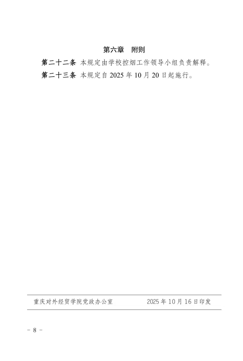重庆对外经贸学院 关于印发《校园控烟管理规定》的通知