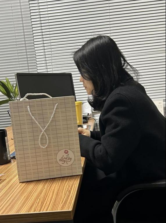 科研处到各个办公室送出礼物,老师们在收到礼物及祝福后收获了美好的心情,洋溢着灿烂的笑容。女同胞们感受到了温暖欣喜的氛围。