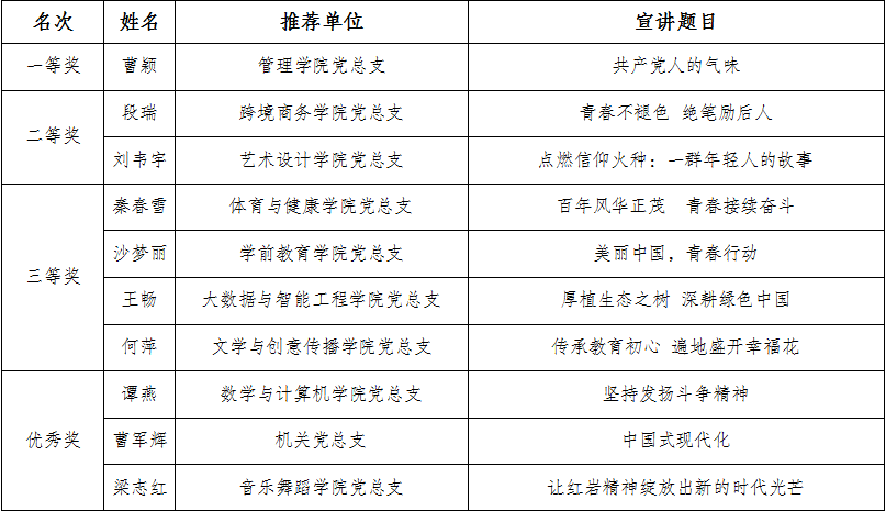 此次微宣讲比赛,是学习宣传贯彻习近平新时代中国特色社会主义思想和党的二十大精神的一次生动实践,展示了我校师生担当使命、奋勇争先的精神风貌,彰显了我校师生的奋发有为,敢于肩负起新时代赋予的神圣使命。在今后的工作中,我校师生将继续发扬“赛马比拼”精神,唯实争先、笃定前行,为奋力谱写新时代新征程新篇章贡献力量。