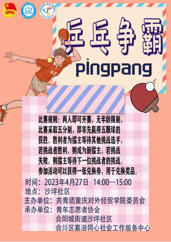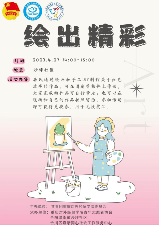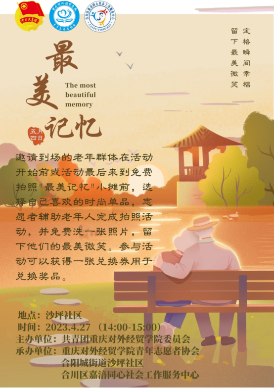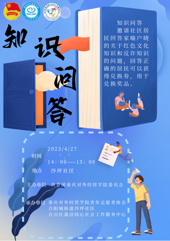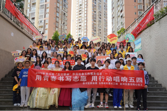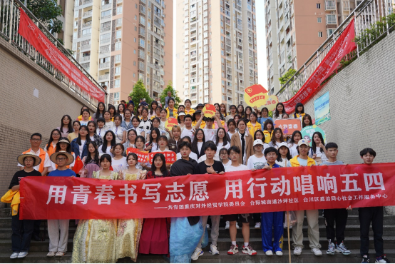 为深入学习贯彻习近平新时代中国特色社会主义思想,传承红色文化和革命精神,引导和帮助广大青年学生在社会课堂中受教育、长才干、做贡献,重庆对外经贸学院联合合阳城街道、合川区嘉涪同心社会工作服务中心在合川区沙坪社区顺利开展“五四”青年节主题活动。此次活动共计152名志愿者参与其中,设置红色游园会特色志愿服务摊位6个,文艺汇演节目12个,社区的所有居民到场并参与活动,直播在线观看人数达700人次。