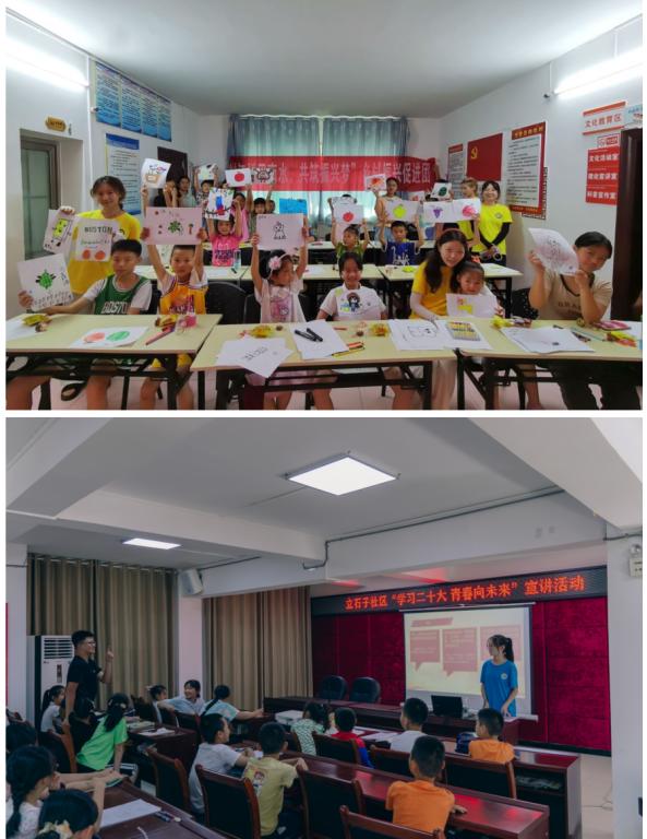 学校发挥青年学生智力优势和专业特长,助力青少年儿童综合素质的培育与发展。进行深度支教,我校多支队伍从课业帮扶、安全教育、心理健康、法制宣讲、手工制作等角度开展50余场的支教活动,将乡村振兴与育人相结合,为提高乡村教育质量贡献青春力量。开设“七彩课堂”,外语外贸学院、数学与计算机学院、体育与健康学院、影视融媒体学院、学前教育学院,校级学生组织等立足专业特色开设心理健康、体育锻炼、播音主持、法治教育等课堂,以娱促学,学娱结合,全方位护航青少年成长;文学与创意传播学院、艺术设计学院从诗词歌赋到琴棋书画,制作纸鸢,墨迹在宣纸上绽放,用一缕墨香带领青少年挖掘传统文化蕴含的丰富宝藏。