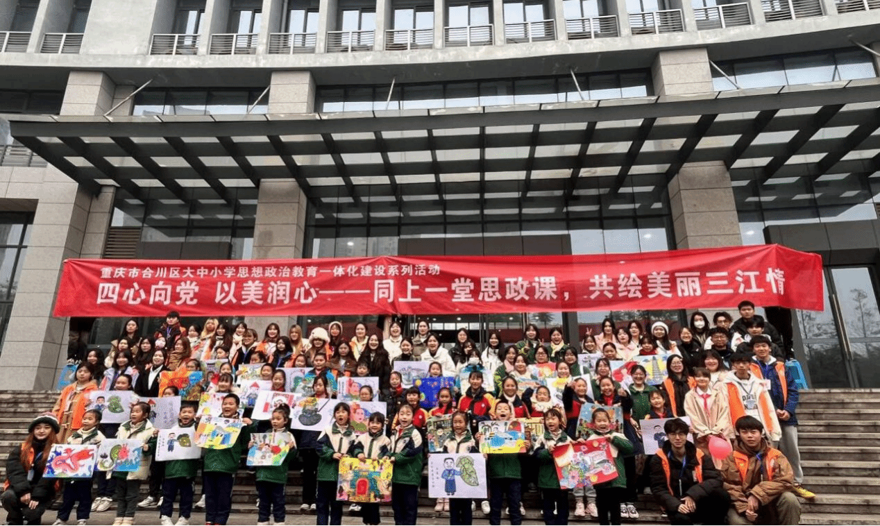 12月29日上午,由学校和重庆市合川区教育委员会领头,校团委、艺术设计学院、影视融媒体学院与合川教师进修学校、合川区新华小学、合川巴蜀小学、新华幼儿园共同举办“四心向党 以美润心”活动,由来自合川区大、中、小、幼儿学校的100名学生代表齐聚本校A校区第九教学楼共同参与。