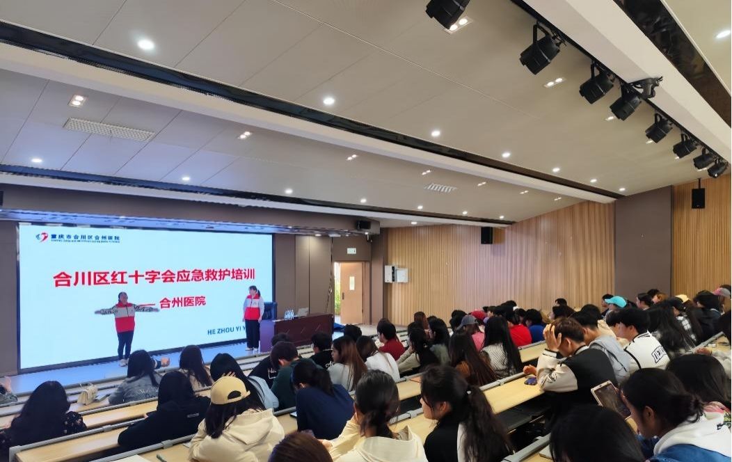 为提高学生的应急救护能力,增强安全防范意识,3月25日下午15:00,学校体育运动委员会、学生处在合川B校区1113联合开展应急救护培训。合州医院门急诊主任、副主任医师李运泽,门急诊护士长、副主任护师刘军受邀为广大学生开展知识宣讲与实操演练。