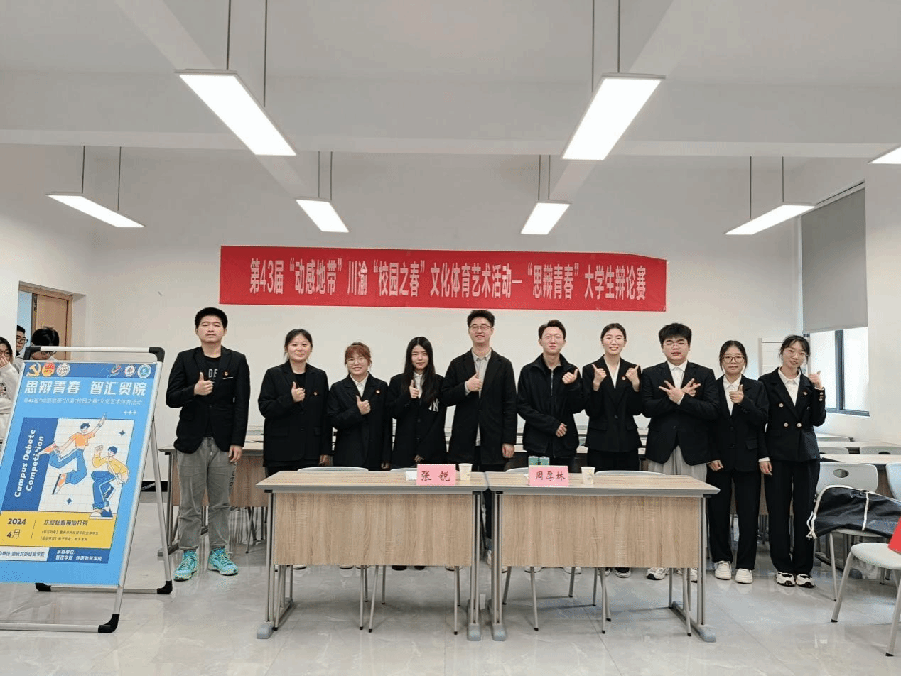 “思辩青春,智汇贸院”辩论赛于2024年4月8日—10日在合川B校区第二教学楼举办,在初赛中,各学院代表队分别以“朋友圈应不应该屏蔽亲人”“知识付费模式是否有利于知识传播”“社会规范制度重要还是自律重要”为题展开了精彩辩论。辩手围绕辩题充分准备,在辩论中联系实际,引经据典,以逻辑之名,寻真挚之理,在剑拔弩张的赛场上充分展现出各队的风度和气势,无论在立论、驳论还是结辩阶段都高潮迭起。