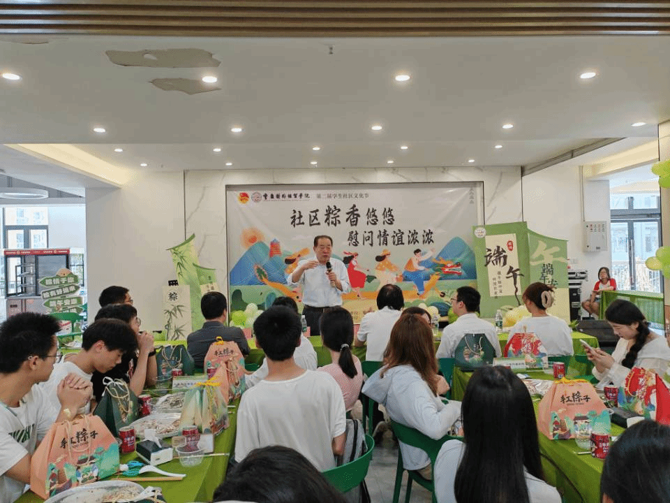 粽香悠悠送关爱,情谊浓浓伴成长。在端午佳节即将来临之际,为进一步弘扬中华优秀传统文化,丰富校园文化生活,营造温馨浓厚的节日氛围,体现对广大学子的慰问和关怀,6月6日下午,学校在B校区致园食堂开展“粽香悠悠,情谊浓浓”端午慰问活动。学校常务副校长王乃武、党委学生工作部部长、艺术设计学院院长等领导一行莅临出席,各学院教师及学生代表参与此次活动。