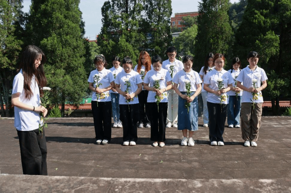 【本网讯】7月7日,重庆对外经贸学院“赓续红色精神,传承红色文化”爱国主义教育实践团到重庆市江津区蔡家镇烈士陵园举行了一场庄重的缅怀仪式,向烈士先辈们致以最崇高的敬意。