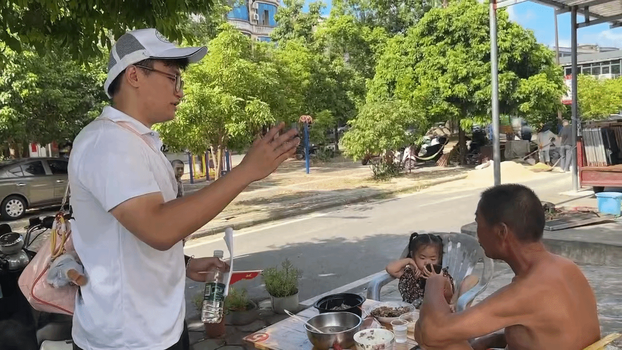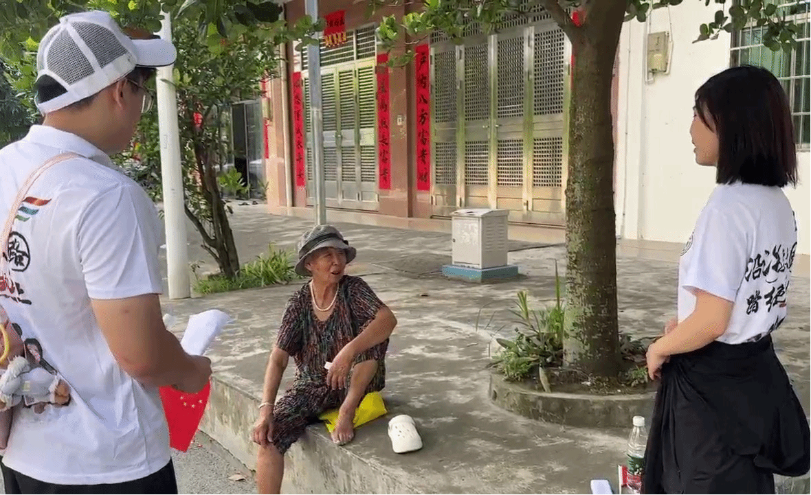 (图为团队成员采访小镇居民)