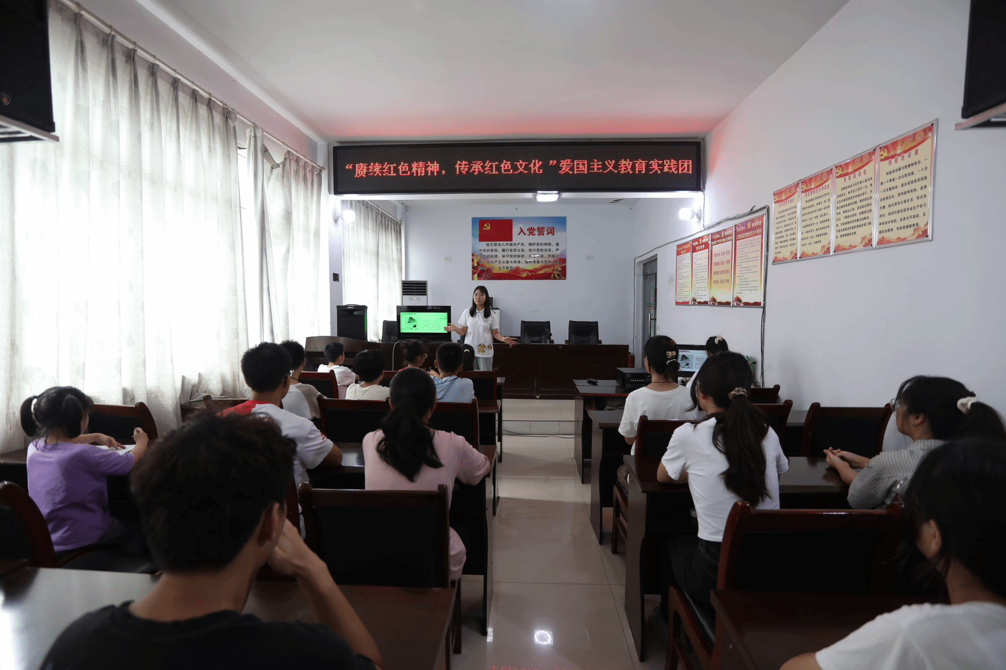 7月10日,团队在江津区蔡家镇开展“大手牵小手,童心向党”爱国主义教育活动。成员们通过生动展示以及游戏提问教学,来增强活动的趣味性和感染力,让爱国教育活动更有热度、更有温度、更有深度,用榜样之光让理想信念的火种,红色能量的基因、时代奋进的脉搏,在新时代青少年中传承下去。