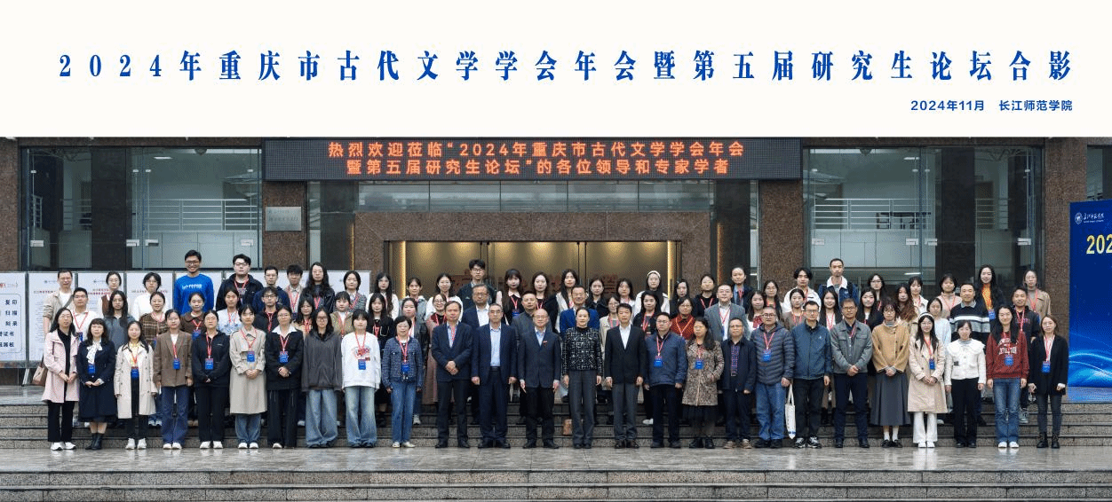 11月16日,由重庆市古代文学学会和长江师范学院主办,长江师范学院文学院承办和《重庆文理学院学报(社会科学版)》编辑部协办的“2024年重庆市古代文学学会年会暨第五届研究生论坛”在鉴湖学术报告厅召开。学校文学与创意传播学院中国古代文学教研室青年教师代表陈博老师等5位老师受邀出席本次年会及平行论坛。
