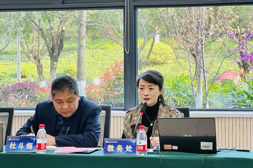 春种一粒粟,秋收万颗籽。时值全校师生学习贯彻党的二十大和全国两会精神之际,为进一步学习和落实学校2023年工作要点,真抓实干、奋发进取,打好底、起好步、开好局,扎实推进学校教育教学高质量发展,3月17日上午,在实训楼9106会议室召开了2023年春季学期教学工作会。学校副校长杜斗恒,各二级学院院长、副院长,学生处、信息技术中心、合川B校区管理与服务中心负责人及教务处科级以上干部参加会议,会议由教务处副处长彭高中主持。