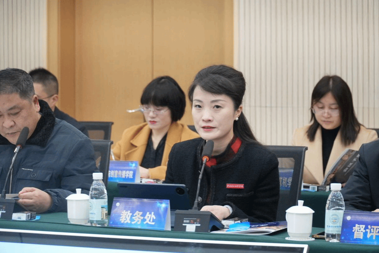 在见面会上,教务处处长曾雪梅从学校基本情况、自查要点、年度亮点、改进思路四个方面汇报学校2023年本科课堂教学专项工作和取得的成绩。