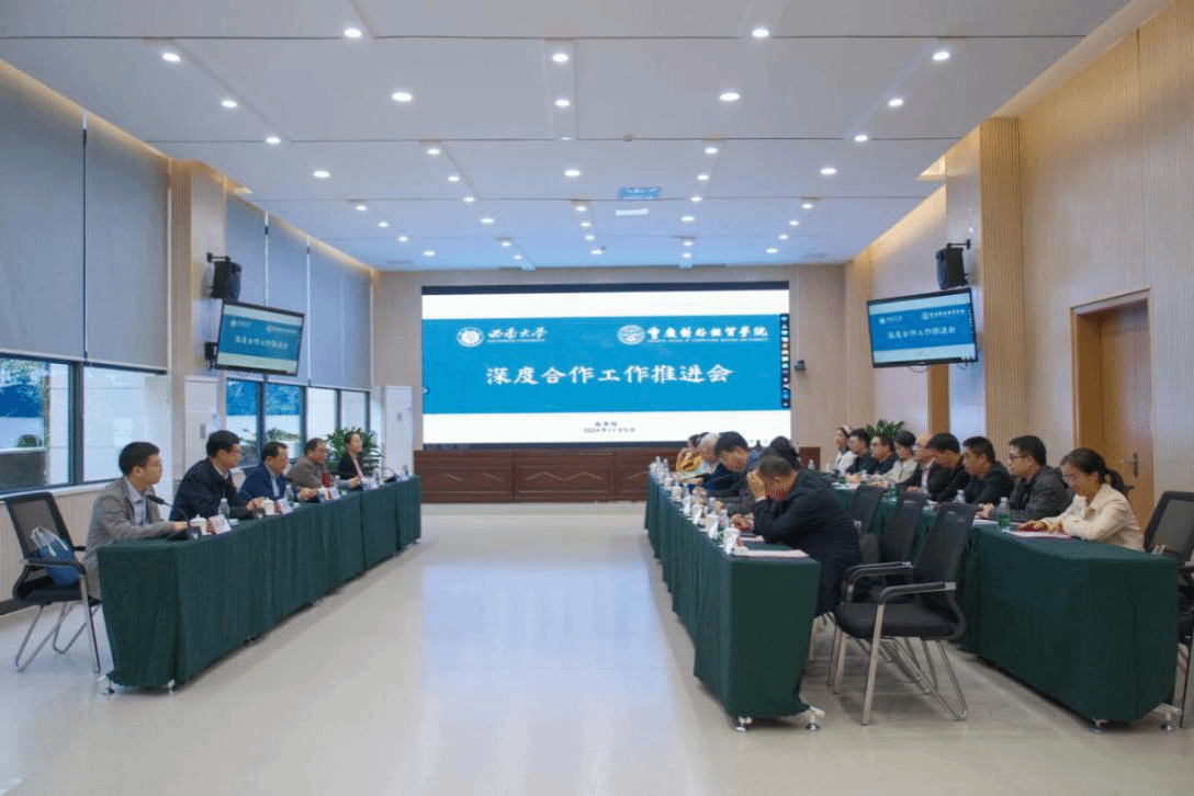 【本网讯】2024 年11月5日,学校与西南大学深度合作工作推进会在A校区实训楼 9106 顺利举行。西南大学教育学部部长朱德全,原教育学部党委书记韩仁友,教育学部教育技术学院院长刘革平,教师黄谦、谢涛;学校校长孙泽平,执行校长董志,校长助理李川及相关职能部门负责人参加会议。会议由孙泽平校长主持。
