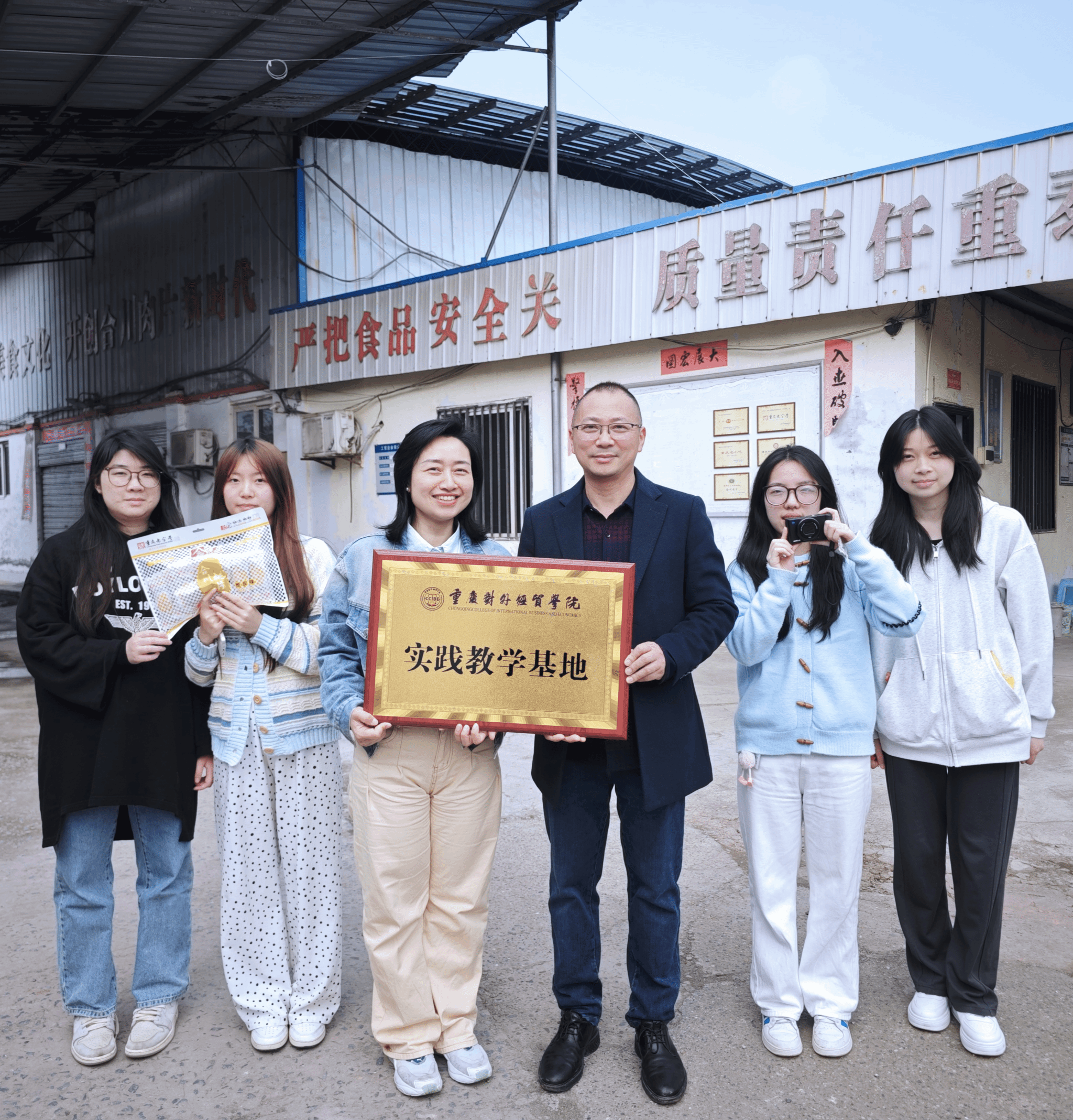 新闻专业师生与重庆念记食品有限公司董事长李念合影