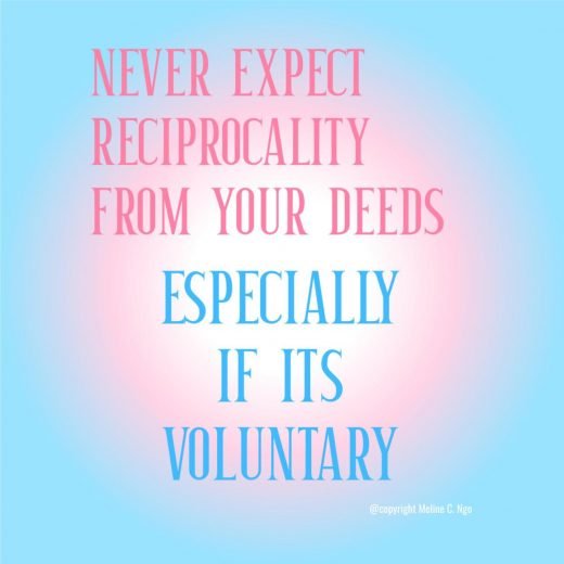 Never Expect Reciprocality From Your Deed, Especially If It’s Voluntary. Never Expect Reciprocality From Your Deed, Especially If It’s Voluntary.